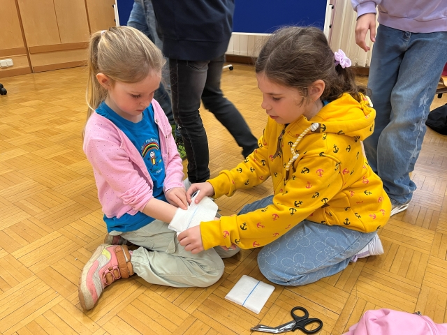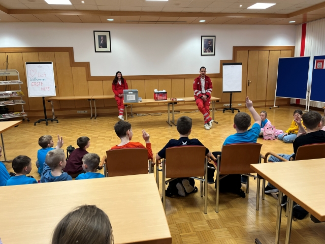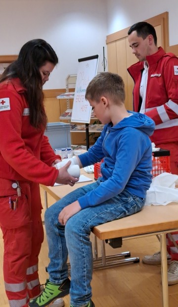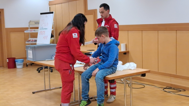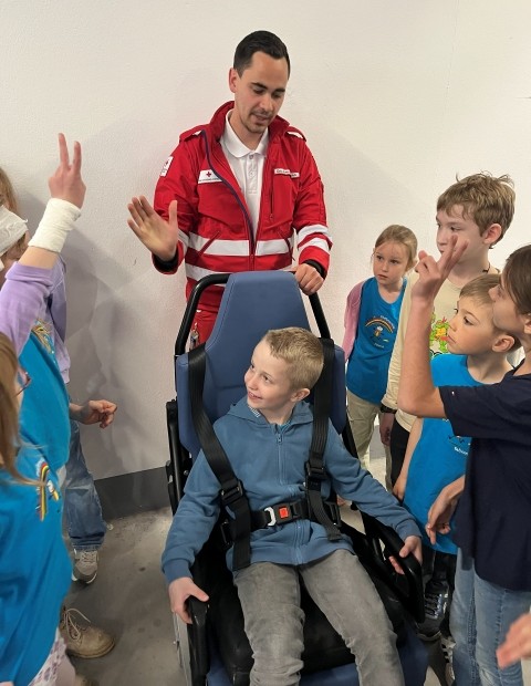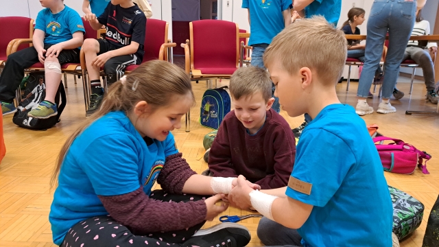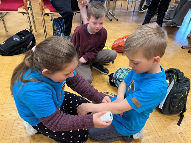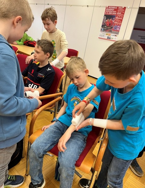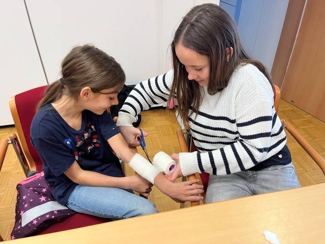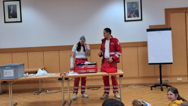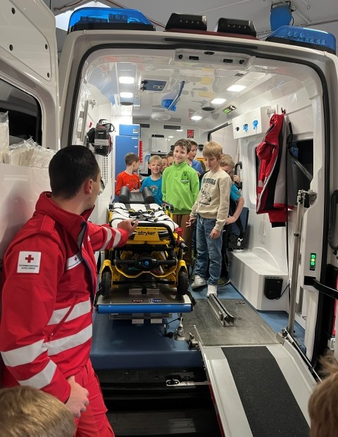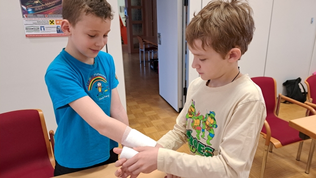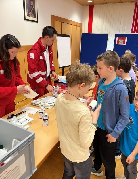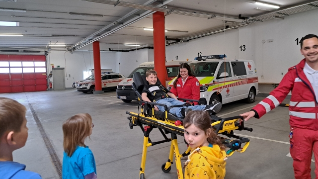 Die Kinder der VS Pfaffenschlag verbrachten am 16. April 2026 einen abwechslungsreichen Vormittag beim Roten Kreuz in Waidhofen an der Thaya. Sie durften sich gegenseitig Verbände anlegen und erfuhren, in welchen Situationen ein Notruf erforderlich ist. Im Anschluss erhielten sie Einblicke in die Bezirksstelle und konnten verschiedene Rettungsfahrzeuge genauer kennenlernen.